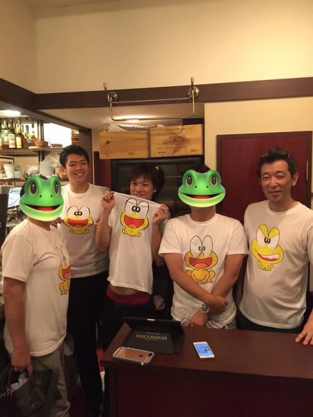 (※ぴょん吉のTシャツを着てきたら何かいいことがあるカモ?!)🦆 「しゃーない、シャンパーニュ1杯サービスしちゃる」byシェフ 【ご予約はこちらから!】 res-reserve 【カエルがなんでこんな価格に?!】 シェフのブログ「産地偽装発覚?」を参照すると、2002年(シェフがリヨンに留学中)フランス現地価格が48€/kg カエルは高級食材なのです。 さらに、ユーロ高、運賃の高騰に続き、 フランス国内では、毎年4000トンのカエルが消費されます。(あたし調べ) その需要にも関わらず、フランスでは資源保護のためにフランスで捕獲されたカエルを販売することは禁じられています。 現在フランスで流通しているものは主にトルコ、エジプトなどから生きたまま輸入して、それを加工して(さばいて)販売しているものです。(シェフの過去ブログコピペ) よって、需要が多すぎて輸出する分までがない、ということも原因のひとつのようです。 なんでこんなに高いのに、カエル祭りをやるのか???それは、フランスの文化だからです!フランス現地のカエル祭りの映像を見たことがありますが、みんなでワインをガバガバ飲みながら、シェフまでもが着席して街の人と一緒にカエルを食べるという光景は、まるで家族のようでフランス人のおおらかさを感じました。